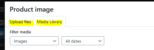Navigate to Product image meta box. Add a main product image by clicking on Set product image link. You will then select Upload files (if requires a new image) or select the image from the Media Library. If uploading a new image, we suggest naming the image with the serial number of the building first, before uploading. This allows for easy association when looking for uploaded images later.